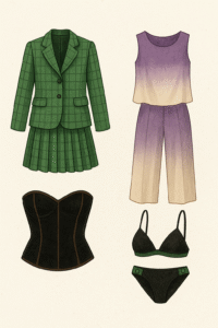 Pedi pro chat gpt criar umas imagens de como seriam as roupas, ele mandou coisas bem parecidas então vou deixar as imagens aqui.