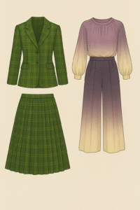 Verde xadrez que fazia um conjuntinho lindo com um blazer da mesma estampa. Eram da